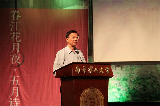 诗人顾浩先生兴致勃勃地发表了讲话。他说,习近平总书记在主持文艺工作座谈会上指出“文艺是时代前进的号角,最能代表一个时代的风貌,最能引领一个时代的风气”,文艺工作者肩负着实现中华民族伟大复兴的中国梦的时代责任,而这次诗会开得正是时候;诗人的创作是一种精神领域的艰苦劳动,江苏是中国诗歌发展的重要阵地,南京自古诗家云集,希望诗人们能够在创优、创新上下功夫,写出无愧于时代的诗篇,实现诗歌艺术价值和时代价值的统一,促进江苏诗歌的繁荣。顾浩先生盛赞王晓锋校长的讲话让人“很振奋”“很鼓舞人”,对南理工优雅的校园环境和浓郁的人文氛围深表喜欢,认为一所理工学府多年来如此重视诗歌教育,重视学生的全面发展和文化素养的提高,显示出高度的文化自觉,难能可贵。顾浩先生儒雅率性的谈吐、敏捷开阔的思路和出口成章的气度,给大家留下了深刻印象。