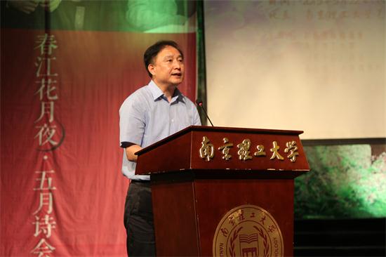在二月兰诗社两名女生精彩的汉服迎宾舞《礼仪之邦》表演过后,婷婷玉立的主持人吴向杰走上舞台,宣布诗会开始。王晓锋校长首先代表南京理工大学致辞。他说,在这鲜花盛开、诗意彰显的美丽五月,我们高兴地迎来了诸位诗人嘉宾。中国是诗的国度,诗歌代表了人类审美理想的最高境界。南京理工大学作为一所以工科见长的全国首批重点大学,多年来秉持“艺以赋质,文以载道”的教育理念,艺术文化教育获得长足发展。2009年南理工诗学研究中心成立以来,在诗歌活动、诗歌教育、诗歌创作、诗歌研究等方面独领风骚,引起普遍关注,特别是精心打造的品牌项目“五月诗会”,业已产生广泛影响。作为校园明星社团的二月兰诗社,也以其出众实力受到中央电视台等众多媒体的聚焦和报道。诗歌和二月兰,如今已被公认为南理工两张亮丽的人文名片。王校长介绍了南理工多年以来的办校方针和诗教特色,认为一所高校的人文素养某种程度上决定着它未来发展的高度;他希望此次诗会能给学生带来诗美震撼的同时,也能借由诗歌纯净的灵魂性而点燃学生的精神之火。王校长在致辞结束时说:“人生与诗歌同在,理想与梦想齐飞。以梦为马,以诗为桥,让我们歌盛世华年,咏青春浪漫,一同拥抱美好的生活和未来!”诗性飞扬的语言,引发台下阵阵热烈掌声。