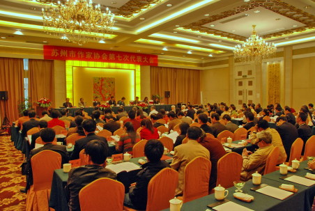 徐国强在会上讲话。他说,在过去的六年中,市作协坚持社会主义先进文化方向,坚持以繁荣文学创作为中心,以多出优秀作品、优秀人才为重点,确立精品意识,团结全市作家和文学工作者,开展了不少有意义的活动和工作。希望新一届作协理事会今后在两个方面加大工作力度,一是为苏州作家创作出更多反映苏州特色、苏州经验的文学作品营造良好的创作氛围,二是进一步加强苏州作家的人才梯队建设,让更多的中青年作家在全国产生影响力。