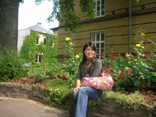 活动八点正式开始,七点四十五进入,我们早到了几分钟,就一直站在楼下边谈边等,正好有人陆陆续续地到来,大多数骑自行车,在这个偏热的夏日黄昏,她们个个满脸汗珠。哥廷根人很喜欢自行车,Schweiger就曾经带着她的两个女儿利用休假期间花上两个星期到德国东部进行长途的骑车游玩。而在哥廷根,因为城市较小的缘故,自行车、步行确也是最合适的出行方式,这也就可以很好地解释,这个小城何以如此地安静与芳香了——草地与树林的气息永远包裹着每一个人,本地人一定不觉为异,但对比我那繁华喧嚣、令人爱恨交加的南京城,还是让我品尝到一种梦境般的感伤。