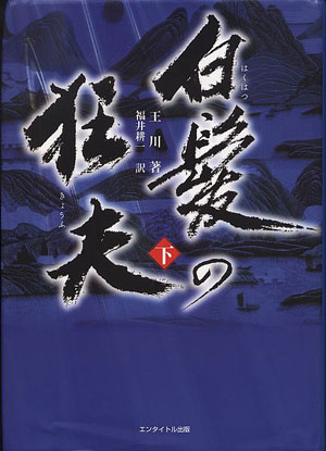 中文版的《白发狂夫》原有35万字,500页,翻译成日文后厚达800页,分成上下两册精装本出版。ENTIT出版社是日本的权威出版社,以出版电子读物为主,同时也兼及纸质本读物的出版。为了突出作者同时是作家和画家的双重身份,出版社请王川题写了日文书名,并选用了他的画来做封面和封底,使其既具有中国的民族风格,又具有日本书籍的特点。