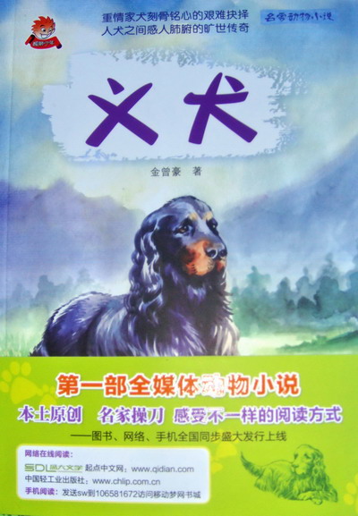 全媒体出版就是图书一方面以传统方式进行纸介质图书出版发行,另一方面以数字图书的形式通过手机平台、互联网平台、数字图书馆、手持阅读器等终端数字设备进行同步出版发行。金曾豪的动物小说《义犬》的全媒体出版是少儿出版界进入新媒体的标志性事件,现在,读者登陆起点中文网(www.qidian.com)及中国轻工业出版社官方网站(www.chlip.com.cn)进行在线阅读,或者手机发送sw到106581672访问移动梦网书城,便可进行手机阅读。