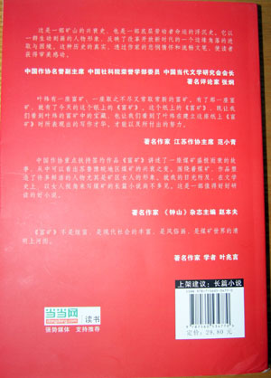 2006年9月之前,我一直在积累资料,构思故事。真正动笔写《富矿》是进入南京师范大学攻读研究生学位以后。脱离了芜杂的校刊编辑工作,在学习读书之余,我终于可以静下心来专心搞自己心仪的长篇小说创作了。在南师大图书馆的一个安静的小角落里,我轻轻地敲击着笔记本电脑键盘,在那个静谧的图书馆里,麻姑和笨妮以及矿区工人的形象一个接一个地在我的笔下跳跃着,歌唱着,悲伤着,愤怒着……她们各自向着自己的人生方向奔跑。