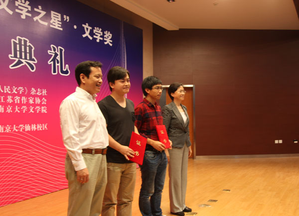 颁奖典礼由《人民文学》副主编宁小龄和编辑部副主任马小淘主持,南京大学党委书记洪银兴、省作协主席范小青和《人民文学》主编施战军分别致辞。