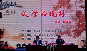 赵本夫1981年以短篇小说《卖驴》走上文坛,并荣获当年全国优秀短篇小说奖。近三十年来,他写出了《天下无贼》、《卖驴》、《无土时代》等多部优秀作品。讲座现场,他从文学的现状、本质、视野和境界四个角度出发,结合现实和个人创作实际,向广大听众展示了自己对文学的理解。他表示,只有阅读经典、关注社会、达到一定的精神高度,才能写出经得起时间考验的好作品。