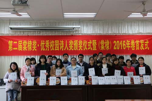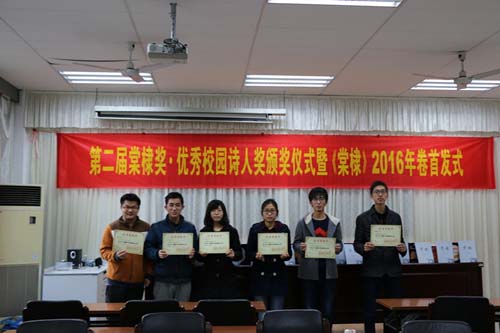 南理工第二届“棠棣奖•优秀校园诗人奖”评选活动由该校党委宣传部、艺文部、诗学研究中心、二月兰诗社联合举办,经严格筛选,最终从众多创作成绩突出的南理工校园诗人中产生6位得主。此次获奖者从本科生到硕士生都有,兼顾现代诗创作与旧体诗创作;6位得主的作品或优美隽永,或深沉凝炼,或清新灵动,或婉转缠绵,风格不一,维度多元,呈现出缤纷面貌。其中梅树德同学近年诗艺突飞猛进,业已成长为本省知名诗人,并获2016年全国大学生樱花诗赛三等奖。