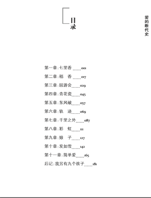 手边这本书叫《爱的断代史》,一个长篇小说,成书于2012年。几年过去了,我觉得这些故事似乎仍然很不错,所以才把它拿出来出版了。电脑里的书稿很多,为什么要选择这本书呢,这个我自己也没有想明白。这本书原来是一组短篇小说,也并不是从《七里香》写起,第一篇是《娘子》,后来写了一组,其中所有的篇名都是用的周杰伦的歌名,准确的说是方文山的词名。故事之间也并不是割裂的,有着千丝万缕的联系。我喜欢周杰伦的歌、方文山的词,看似含混但实际又很清晰。其实生活中我们要所追求的清晰,往往只是简单的事实,这注定是浅薄的。小说或者说是文学就要有一种模糊的意识,不要试图搞清楚什么,而是要把许多残酷的现实给简省掉,即便那些看似美好的繁华也要统统省去。这部小说有个明显的缺点,就是开头的时候有点闷,这就是长大的过程,一开始总是索然寡味的。
