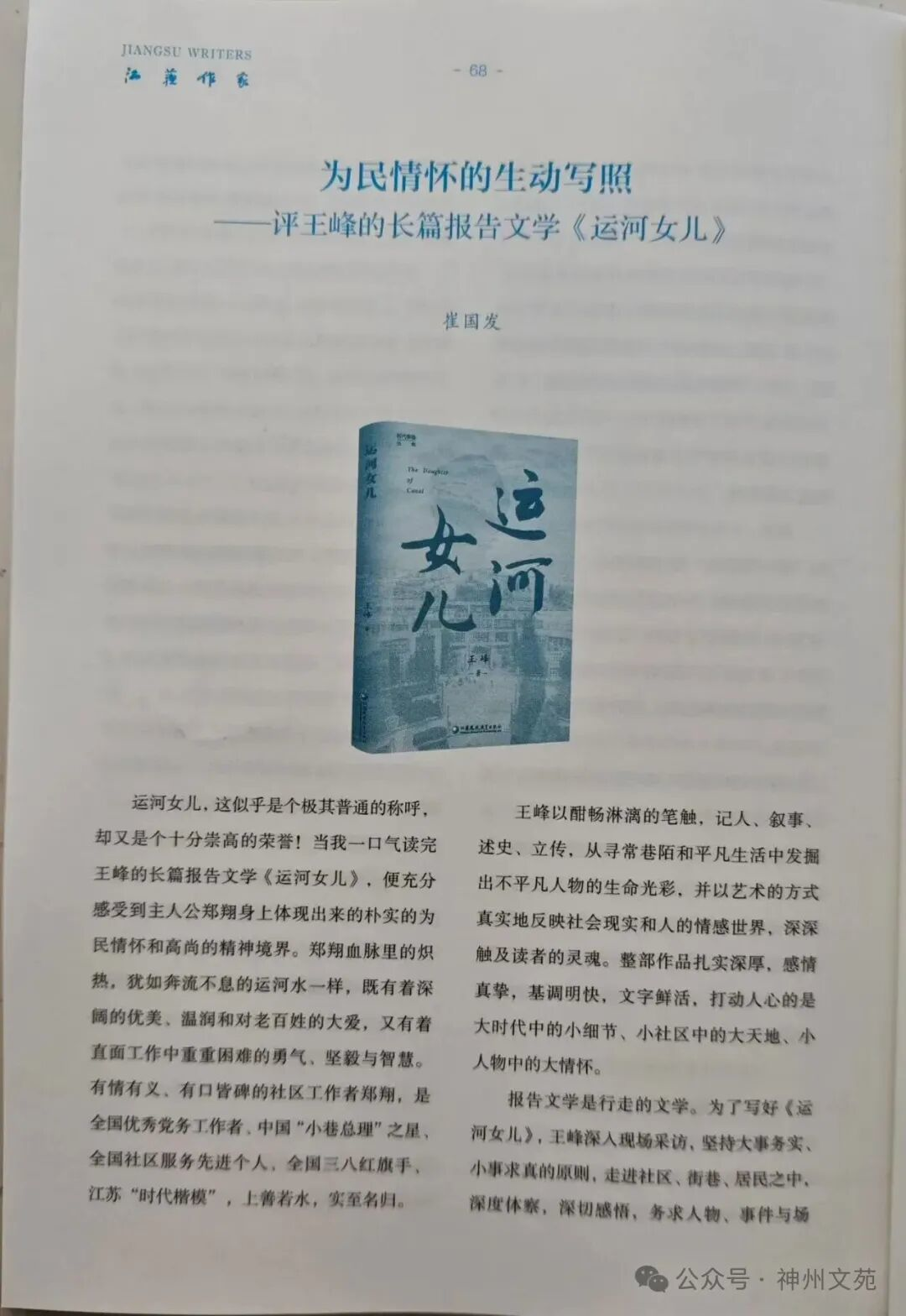 (注:报告文学专著《运河女儿》,王峰著,江苏凤凰教育出版社2025年10月出版)