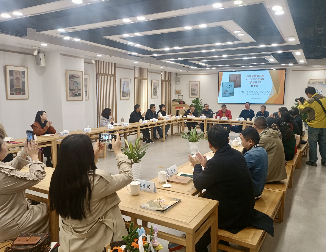 分享会上,与会者从各自角度畅谈了与吴瑕交往的经历、作品的精彩之处,期待吴瑕在今后的人生和文学创作道路上继续努力,书写更多充满勇气、希望与温度的动人篇章。80岁的工人作家徐廷华称赞,“真情是文学的根,吴瑕的作品把根扎得很深。”李风宇则感慨,“吴瑕的文字是苦难里开出的花,纯粹又有力量。她的写作从无华丽辞藻,只有 “笨拙” 的真诚。” 满震直言,“她用南京方言书写生活,让地域文化在文字中活了起来。”南京市残联四级调研员王友松评价,“这场发布会暨新会员吸纳仪式,是残健共融的生动文学实践。”建邺区作协主席张茂龙对吴瑕的成长和她的散文作品给予高度评价,“作为建邺区文学创作队伍中的优秀作家之一,吴瑕的文学成就令人瞩目。尤为可贵的是,她的写作从不以身份博取同情,而是以纯粹的文学品质赢得尊重。她的散文意境深远,文字纯朴有力,富有浓郁的烟火气,其表达能力与即使在体格健全的作家中也属优秀。这让我们深刻体会到:真正优秀的散文,其终极魅力在于精神的独立与文学的纯粹。”