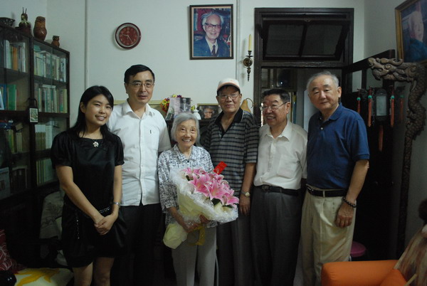 江苏作家网讯 2009年9月7日为著名翻译家杨苡的九十华辰,南京市作协近日邀请了包忠文、冯亦同、裴显生等老同志一并上门贺寿,文联副主席孙尔台、作协副主席鲁敏为杨先生送上了温馨的鲜花和中秋月饼。尽管九十高龄,但杨苡思维敏捷、谈笑风生,还不时来上几句幽默的玩笑。她拿出了珍藏多年的旧照片、作协旧杂志、赵瑞蕻译作旧版本等与大家一起回忆旧日时光。