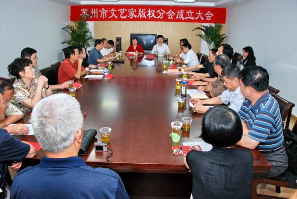 成立大会通过了《苏州市文艺家权益保障委员会(苏州市版权协会文艺家分会)章程》,选举产生了第一届委员会,聘请江苏立泰律师事务所吴卫华律师为法律顾问。成立大会上,市文联党组书记、副主席朱建华在讲话中要求,要积极发挥文艺家版权分会的作用,宣传版权保护的重要性,提高法律意识,主动积极开展维权活动,积极向社会推介文艺家创作成果,发挥文学艺术作品的延伸作用。