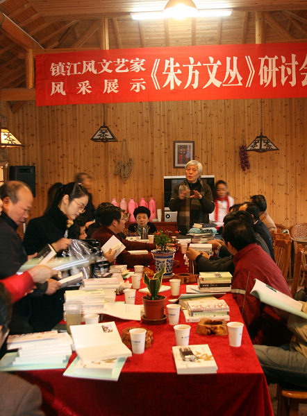 江苏作家网讯 11月15日,在风景秀丽的南山山麓,在荡漾着碧波的龙泉山庄,镇江市文联和市作协举办的《朱方文丛》作品研讨会正在轻松热烈的气氛中进行着,这项活动是镇江市文联组织的文艺家风采系列展示活动之一。《朱方文丛》是由镇江市作家协会主编、上海三联书店出版的一套纯文学丛书,该书汇集了镇江十位作家的诗集、长篇小说、散文集和报告文学集。分别是:赵康琪的诗集《放飞记忆》;丁伟民的散文集《寻常巷陌》;蔡永祥的散文集《被爱的感觉》;赵立源的散文集《北方的童话》;王红蕊的散文集《心弦起舞》;吴绍祥的长篇小说《平安夜》;曾竹花的诗集《一个人的花园》;叶锦春的报告文学集《江花红胜火》;文靖的散文集《采薇者说》;杨莹的散文集《染指岁月》。这是镇江新时期文学一份值得留存的材料,展示了镇江文学创作的实力,也是市作协为作家们做的实事之一,其中有几部书还是该市作协的签约作品。
