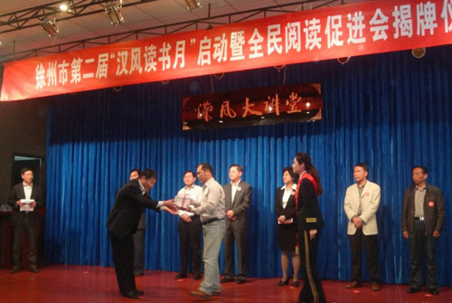 2014年4月30日下午,徐州市第二届“汉风读书月”启动暨全民阅读促进会揭牌仪式,在市图书馆举行。副市长李燕讲话,市委宣传部长冯其谱揭牌。徐州市作家协会主席暨报业集团总编王建出席了本次活动,副主席叶炜,代表市作协赠书《大风起徐州》,徐州作家蒋岚宇、龚房芳、崔铁军、钱丽娅、刘振坤、孔伯祥、钱卫平、郭运菊、晨驰等为农家书屋赠送了个人文集。