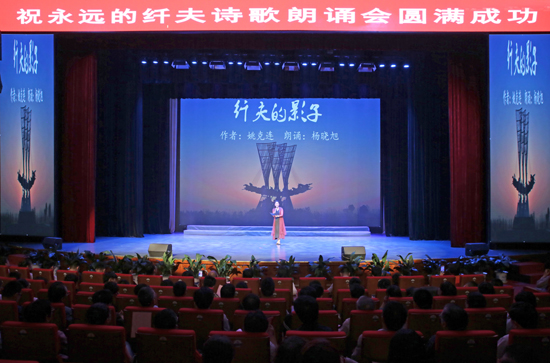 为纪念毛泽东主席《在延安文艺工作座谈会上的讲话》发表75年,深入贯彻落实习近平总书记在新时期对文艺工作者提出要创作“有筋骨、有道德、有温度”的作品的新要求,积极配合市委提出的开展“弘扬恩来精神,建设恩来家乡”的活动,激发引导全市广大干部群众在践行“纤夫”精神中共同担当起推动淮安科学跨越发展的责任使命,喜迎党的十九大召开,5月23日,在淮安市作家协会的主题创意下,由淮安市文联、市文化广电新闻出版局、淮安报业传媒集团和共青团淮安市委联合主办,淮安市作家协会、市文化馆、市朗诵协会共同承办的“永远的纤夫”诗歌朗诵会在淮安市文化馆新馆精彩举行。淮安市相关单位领导、社会各界及文艺工作者近300人参加了诗会。