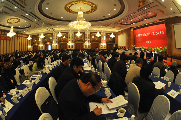 江苏作家网讯 2月1日,江苏省作家协会第七次代表大会召开全体代表大会,省作协党组书记、书记处第一书记、副主席范小青同志作六届理事会工作报告,党组成员、书记处书记张王飞作关于修改《江苏省作家协会章程》的说明,代表们认真听取了工作报告,并对工作报告和新章程(草案)进行了讨论。2月2日上午,代表们继续深入学习讨论省委梁书记在开幕式上的重要讲话和工作报告,下午,代表们参观了省作协新大楼和南京博物院。3日,代表们审议通过了省作协六届理事会工作报告、新章程和大会决议,选举产生了新一届的主席、副主席和理事名单。