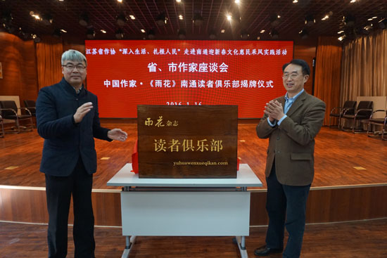 省作协党组书记、书记处第一书记、副主席韩松林和南通市文联党组书记王法为南通雨花读者俱乐部揭牌