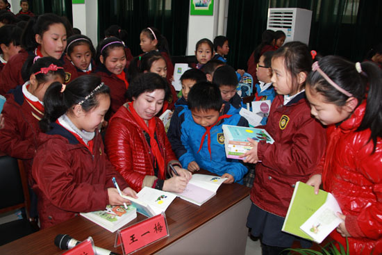 著名儿童文学作家王一梅为证大小学学生签名赠书