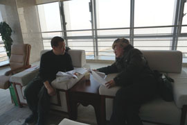 著名作家费振钟与大学生村官交谈
