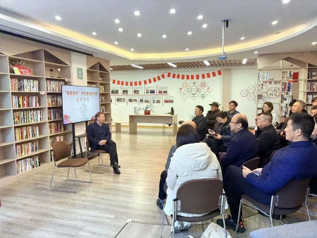 为深入落实省委宣传部“茉莉花开”直通车行动及省作协“作家下基层”文学志愿服务要求,2025年12月20日上午,南通市作家协会主席储成剑走进如皋农商行如城支行东皋书吧,与如皋当地作家、文学爱好者进行面对面交流。