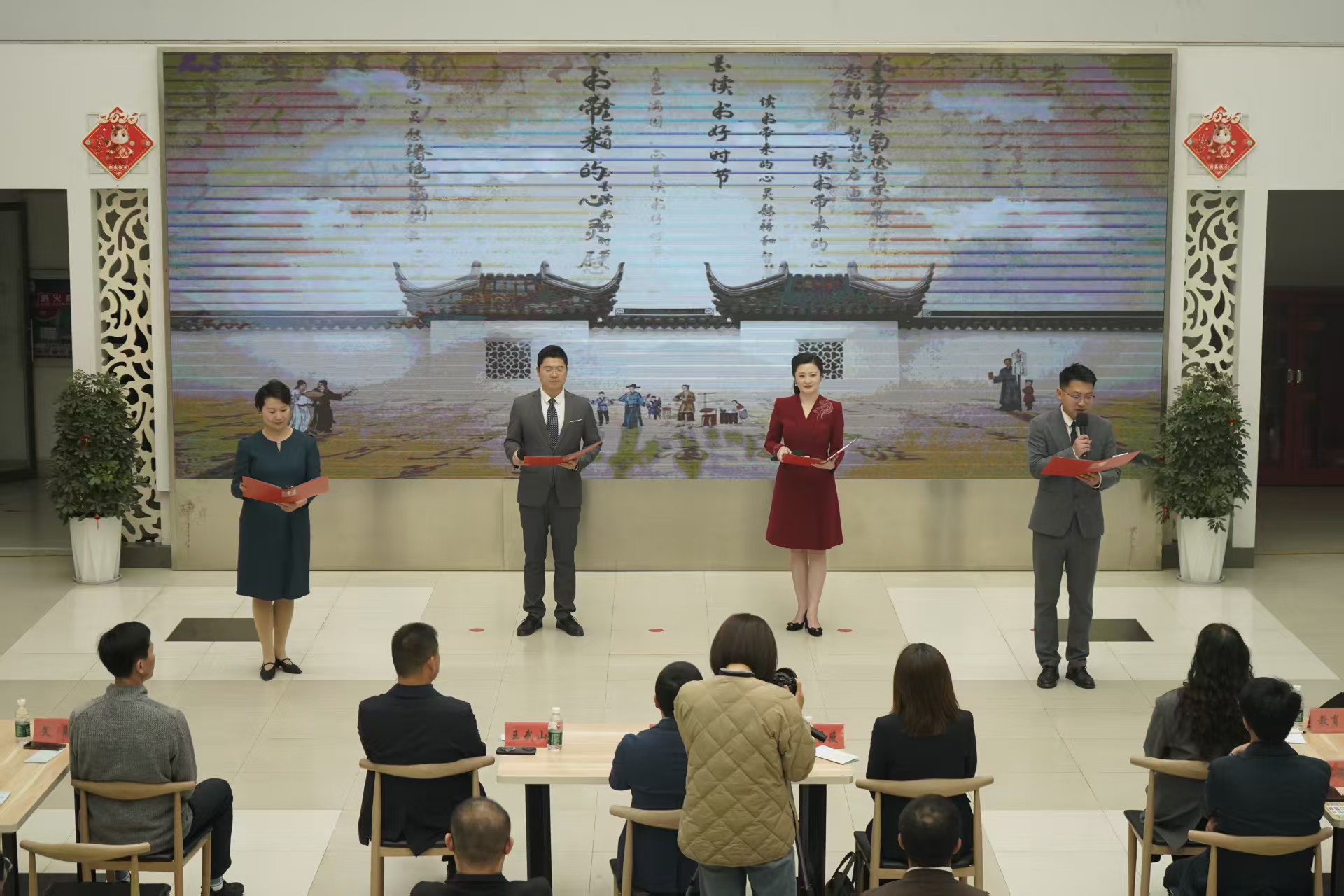 活动在灵动优美的开场舞蹈《春》中拉开帷幕,《四十芳华仪征梦 书香童声颂华诞》《藏在春天里的书香》《在书香里 定格最美的风景》等朗诵节目轮番上演,以真挚情感传递书香力量。现场介绍了文献著作展筹备与展陈情况,展览聚焦仪征名人著述、名城研究、地方特色三大板块,探寻撤县设市40年文化脉络与精神底蕴。