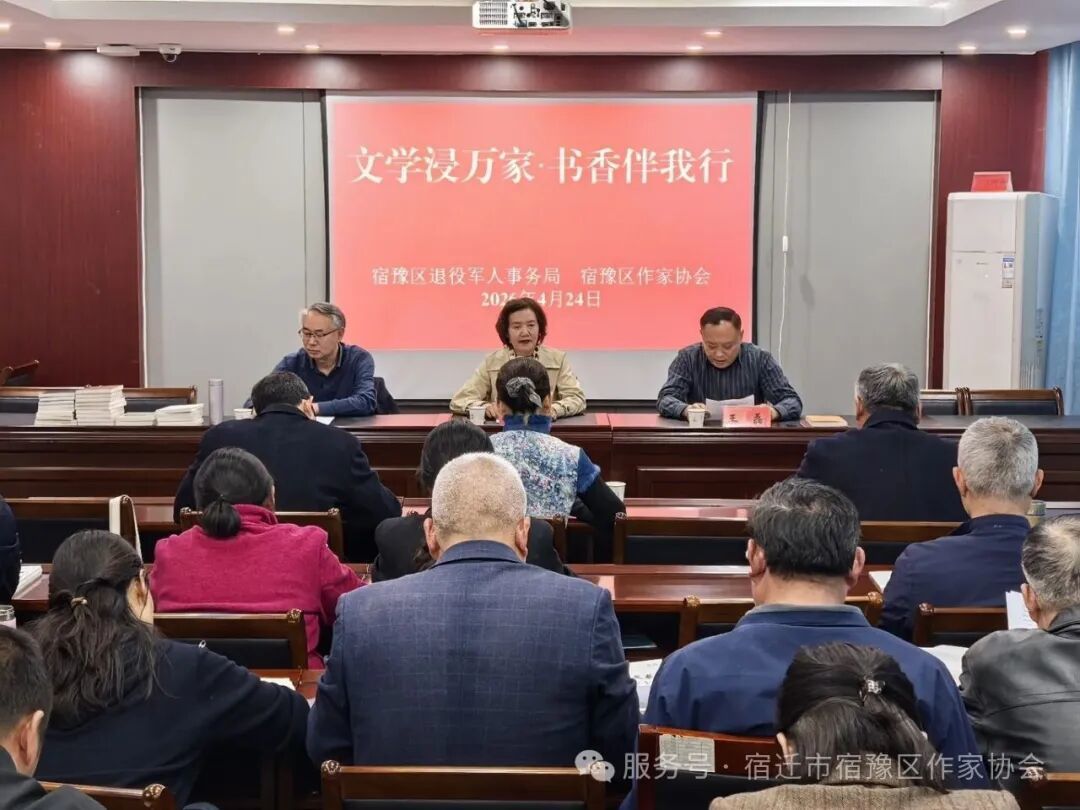 为推进全民阅读,传承本土文脉,切实发挥文学滋养心灵、凝聚力量的作用,4月24日下午,值全国首个全民阅读活动周到来之际,宿豫区作家协会走进该区退役军人事务局,为机关工作人员送上一场文学性与实用性兼具的文化盛宴。区退役军人事务局全体工作人员、宿豫作协部分骨干成员近40人参加活动。宿豫作协副主席丁厚银主持活动。