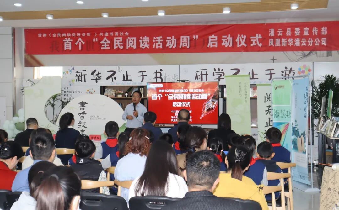 全县贯彻《全民阅读促进条例》暨首个“全民阅读活动周”启动仪式在灌云新华书店中心门店举行。县委宣传部、县教育局、县科协、凤凰新华灌云分公司等单位负责人出席,新区实验小学师生、家长及各界群众代表80余人参加。活动现场,港城名师开展阅读分享,宣传部业务科室解读《全民阅读促进条例》,学生代表深情朗诵经典篇目。嘉宾与群众还参观了图书展区、体验亲子阅读,沉浸式感受书香魅力,正式拉开全县阅读活动序幕。