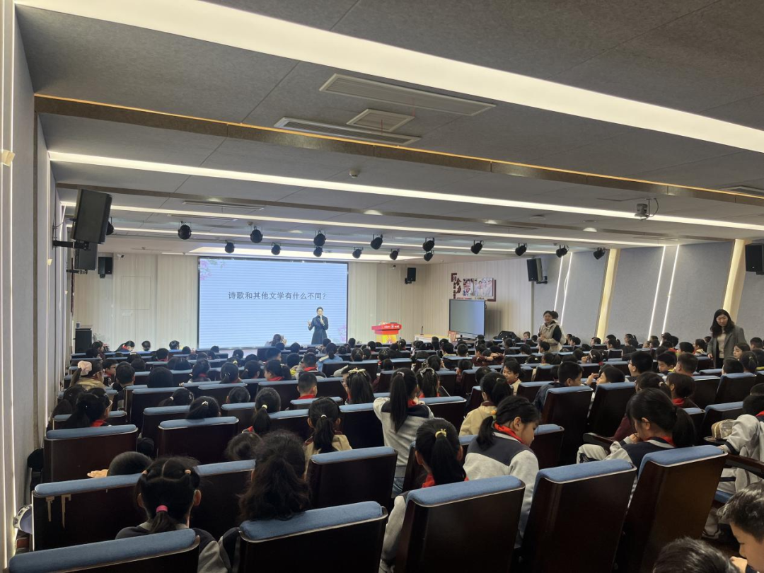 活动现场,巩孺萍老师结合自身创作经历与代表作品,与师生们展开交流。她用亲切的语言,引导孩子们从身边事物中寻找创作灵感,传授诗歌创作技巧,鼓励孩子们大胆观察、勇敢表达。现场互动氛围热烈,同学们踊跃举手提问、分享感悟,真切感受到儿童文学与诗歌的独特魅力,燃起了对阅读和写作的浓厚兴趣。