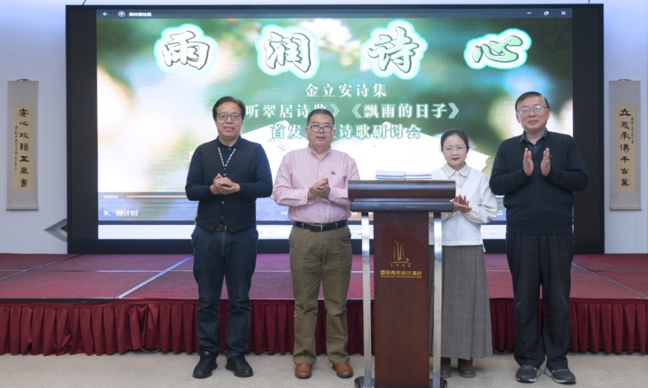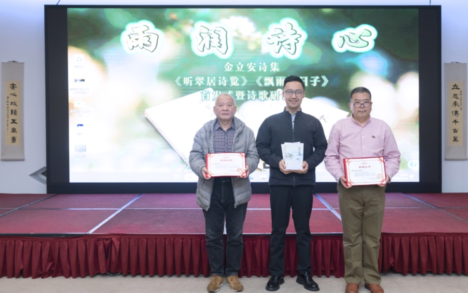 2026年3月18日下午,金立安《听翠居诗览》《飘雨的日子》诗集首发仪式暨作品分享研讨会在南京举办。本次活动由南京诗词学会、南京出版社主办,南京市建邺区诗词楹联家协会、南京江东诗社及文心诗社承办,近百名嘉宾齐聚现场,共同感受金立安的创作风采,品味其作品中的诗意内涵