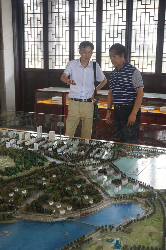 《雨花》主编李风宇(左)与常熟虞山读者俱乐部干事长李根龙(右)交谈