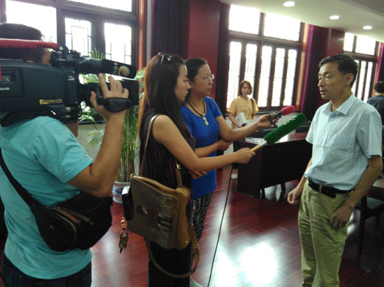 李风宇主编(右一)接受当地媒体采访